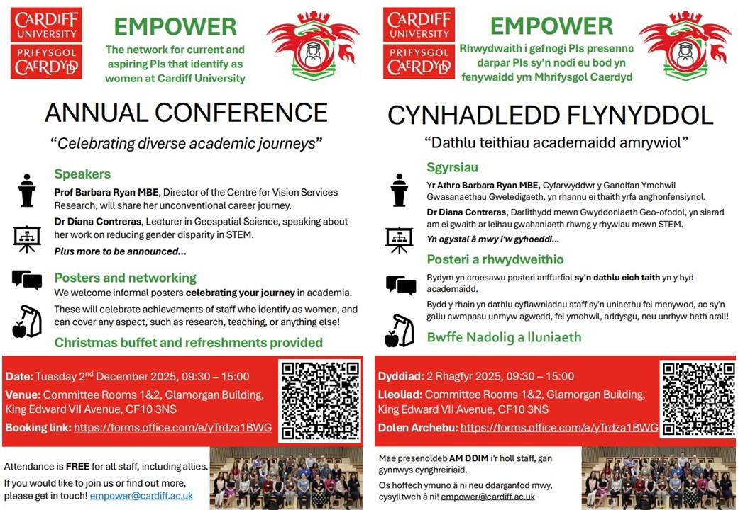EMPOWER is open to academic staff at all levels, from early-career researchers to professors at Cardiff University. Please find additional information at: https://intranet.cardiff.ac.uk/staff/news/view/2618080-introducing-empower